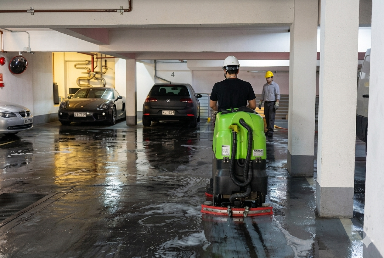 Este sistema es ideal para pavimentos industriales, estacionamientos, bodegas y áreas logísticas, donde la acumulación de polvo, grasa y residuos puede afectar tanto la seguridad como la imagen del recinto.
